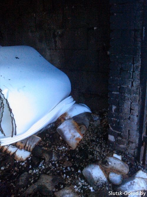 По прибытии к месту вызова отделения на АЦ ПАСП №16 города Слуцка было установлено загорание внутри кирпичного склада размерами 7х15м, пламя выбивалось из ворот. Здание разделено на две половины, электрифицировано.