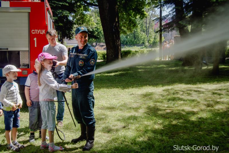 Во время мероприятия, в рамках Международного Дня защиты детей, Слуцкий РОЧС проводил акцию «Не оставляйте детей одних». Любой желающий мог примерить на себя форму спасателя, посидеть в кабине автоцистерны и даже опробовать в действии пожарно-техническое вооружение.