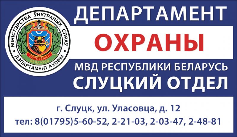 Справку о порядке приема жилых помещений граждан по охрану можно получить в Слуцком отделе Департамента охраны МВД Республики Беларусь по адресу: г.Слуцк, ул. Уласовца, д.12, каб.13 или по телефону 2-21-03.