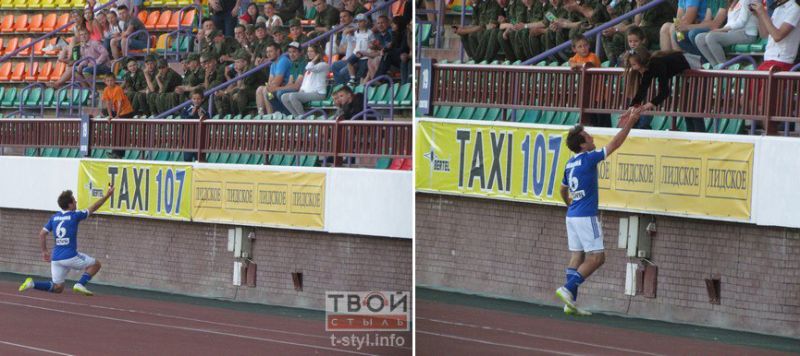 Полузащитник «Слуцка» Сергей Левицкий, гродненец, ранее игравший за «Неман», забив красивый гол в самом конце матча, подбежал к трибуне, подозвал свою девушку Майю Уфимцеву и, встав на колено, открыл красную коробочку, в которой оказалось обручальное кольцо, пишет Tribuna.com.