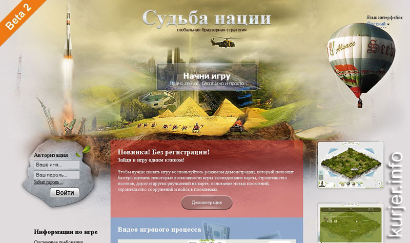 Всего на конкурс было подано 114 заявок из различных регионов РБ. Сергей Богдашич УНИКАЛЬНЫЙ ПРОЕКТ. В феврале этого года Александр Сорочинский в переписке с корреспондентом газеты «Кур'ер» сообщал: «Игра позиционируется как онлайновая глобальная браузерная стратегия. Изначально задумывалось сделать подобие Цивилизации(http://civilization.com/) в браузере, но ввиду специфики онлайновых браузерных игр получилось что-то своё, уникальное. Но привычное игрокам Цивилизации. Подобных браузерных игр, где игроку нужно перемещать множественные войска по карте, строить на ней же города, дороги, посевы, мелиорацию и многое другое пока нет! Поэтому остро стоит проблема выпустить игру как можно быстрее и не ждать конкурентов. Мы хотим заполучить часть пользователей популярной браузерной игры Травиан (http://travian.com) Она значительно уступает нашей игре как по геймплею так и по сюжету и графике. Но у неё есть одно преимущество — она уже работает и приносит деньги, а нам не хватает последнего рывка.