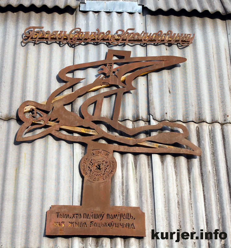Плоскостная скульптура в честь Слуцких повстанцев. Частный художественный музей Анатолия Белого в Старых Дорогах Знак, установленный на крыше музея, представляет собой металлический стилизованный шестиконечный крест святой Ефросиньи Полоцкой. На крест наложено изваяние умирающего повстанца, который правой рукой защищает символ Отчизны — древний белорусский герб “Пагоня”. В основании знака — текст “Тым, хто пайшоў паміраць, каб жыла Бацькаўшчына”. Авторами знака являются недавно скончавшийся председатель минского городского культурно-просветительского клуба “Спадчына” Анатолий Белый и художник Владимир Каравацкий.