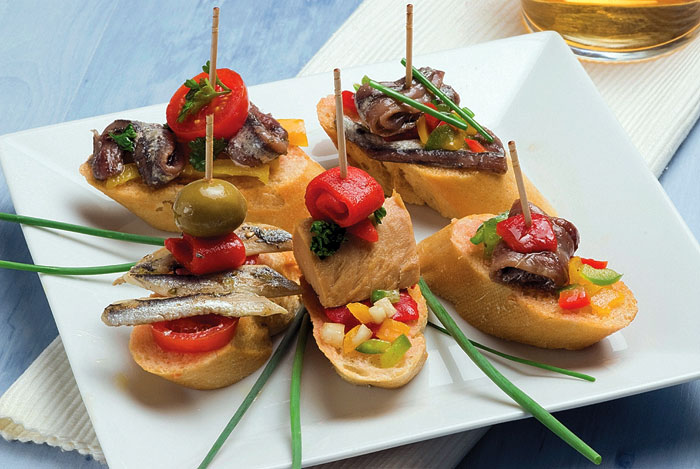 Тапас – это любая закуска, подаваемая в баре к пиву или вину. Так как ночь – не самое удачное время для тяжёлой пищи, можно обойтись лёгкими закусками.