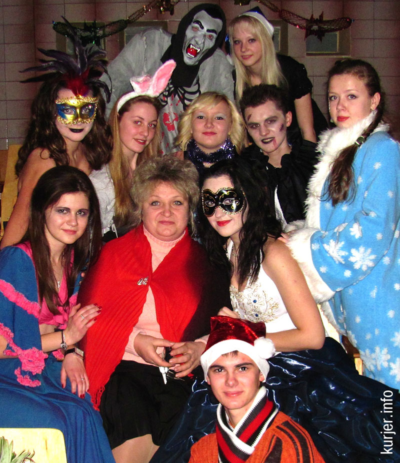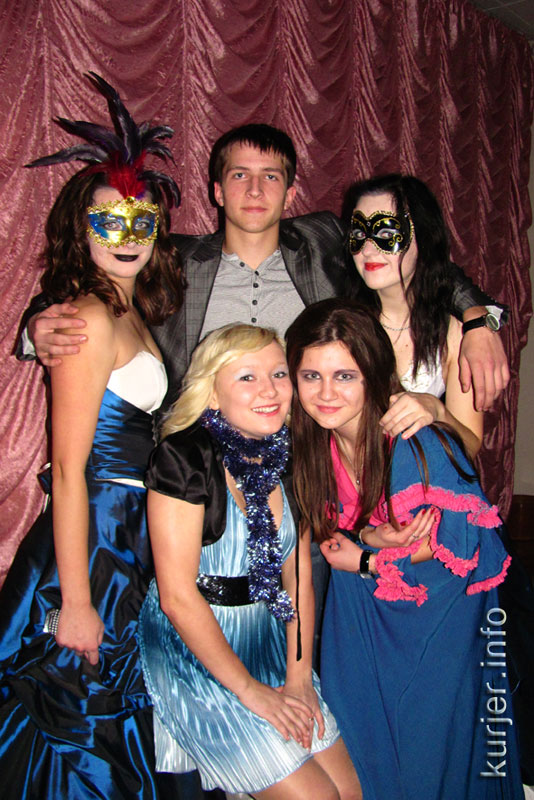 В конце декабря выпускники организовали в СШ №13 новогодний бал- маскарад. Обязательным требованием бала были костюмы его участников, но, тем не менее, некоторые предпочли прийти в дедоморозовских колпачках.