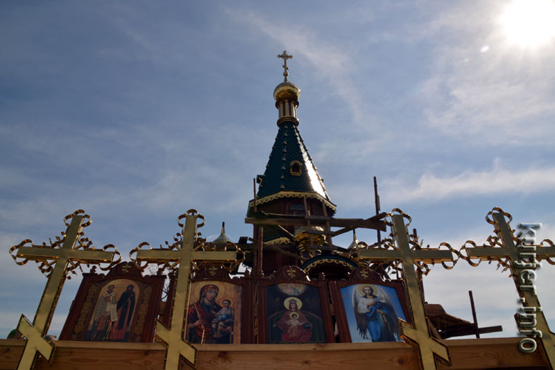 Фактически с освящением и установкой крестов и икон часовня приобрела законченный вид. Рабочие уже демонтируют строительные леса.