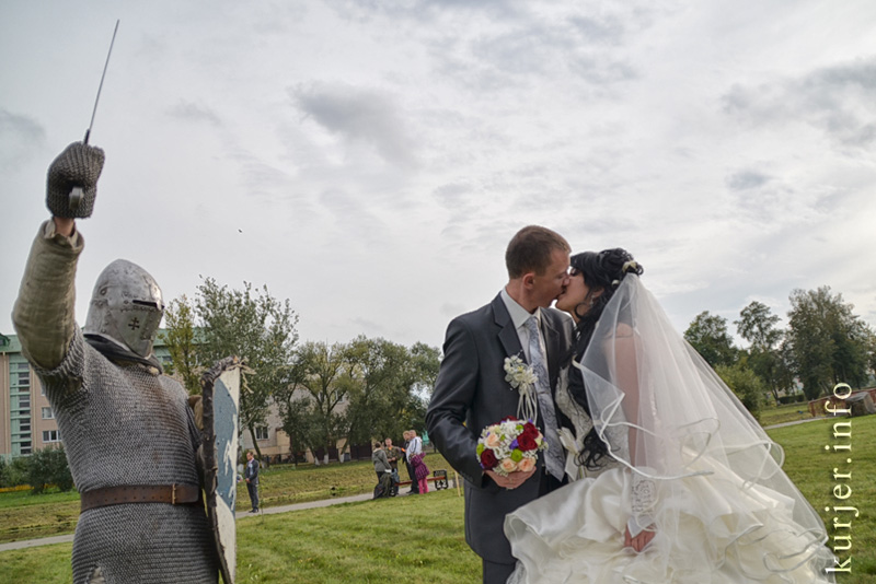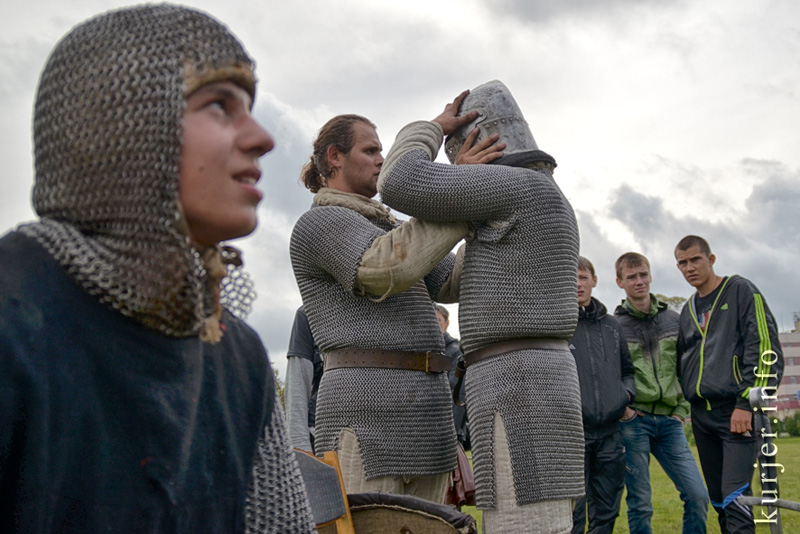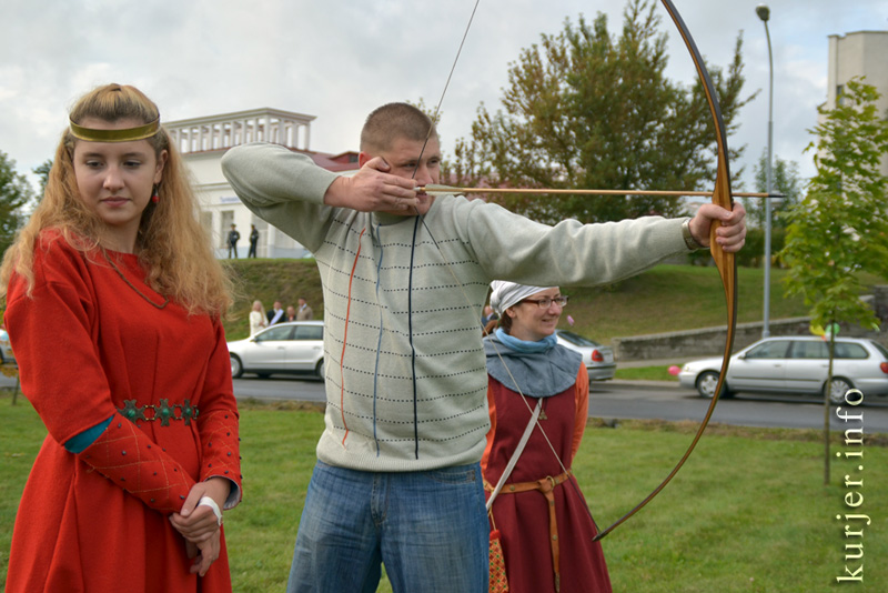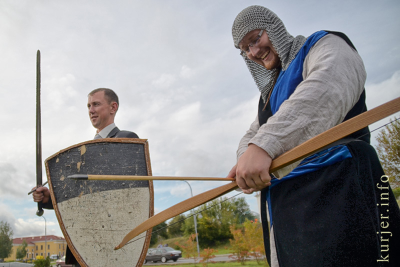 В районе набережной подальше от праздничной суеты развернули свои шатры и знамёна члены слуцкого рыцарского клуба «Серебряный пегас» и столичные члены белорусской гильдии лучников. Желающие на символическую плату могли пострелять из луков, заглядывали сюда и молодожёны, в честь которых рыцари в полном облачении устраивали ристалища.
