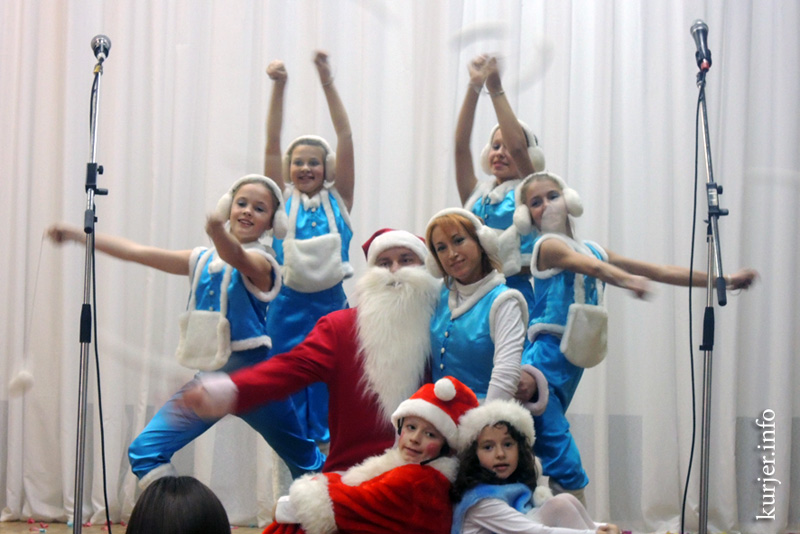 В финальной части выступления слуцкие Дед Мороз и Снегурочка показали всем присутствующим в зале зажигательный спортивный танец. На протяжении всей программы Владимиру и Оксане помогали юные воспитанники Слуцкого ЦДТ.