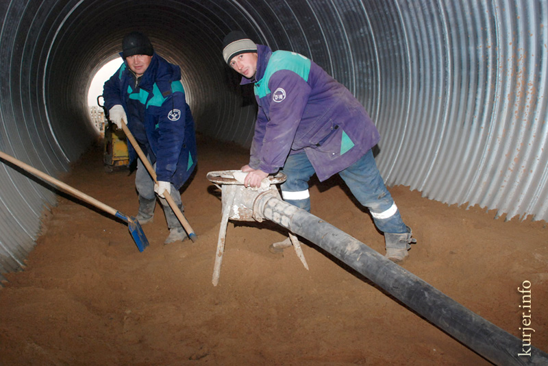 «Мы стараемся работать быстрее, но иногда простаиваем из-за отсутствия нужных материалов, — говорит бригадир отделочников СУ137 Сергей Главацкий. — Наши планы – сдать подземный переход в эксплуатацию к декабрю. Уже вылиты бетонные ступеньки, уложен кабель для обогрева в зимнее время. Обшиваем их гранитными плитами из Украины. Укладывается гравийно-цементная подушка, по верху которой будет положена плитка. Надеюсь, что уложимся в срок, а пассажиры, приезжающие на работу забудут о временных неудобствах».