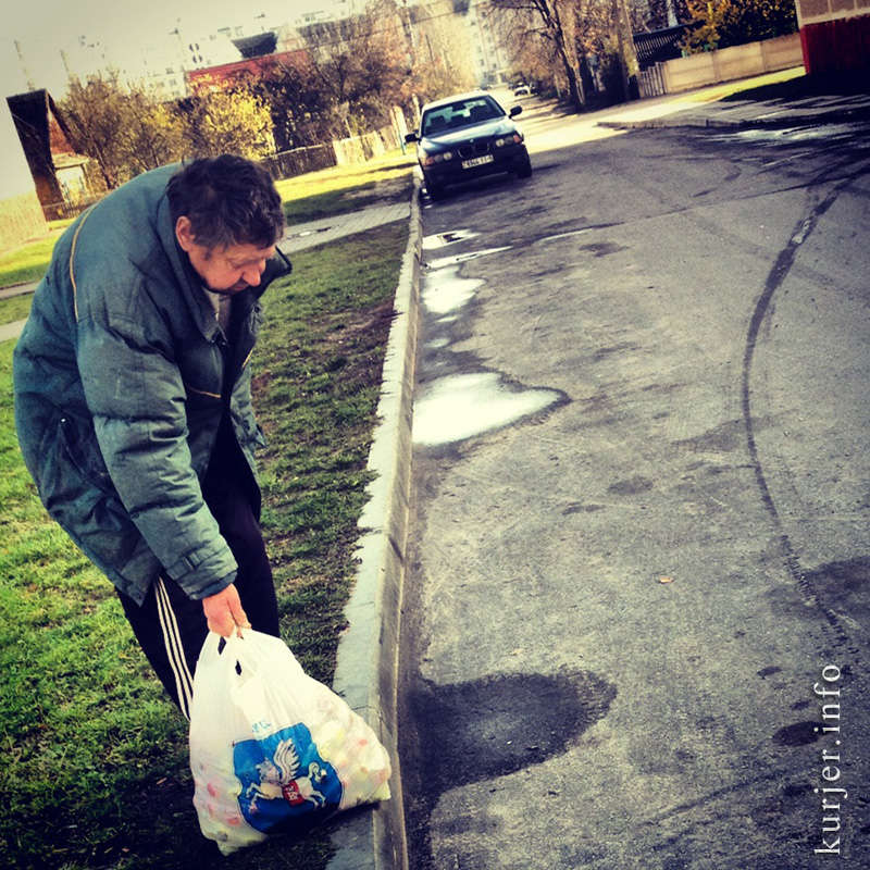 3 ноября. Случчанин с полным пакетом яблок приостановился отдохнуть.