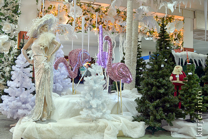 11 ноября. В универмаге «Слуцк» появились новогодние украшения. Своеобразная выставка привлекает посетителей: они не только рассматривают, но и фотографируют своих детей на фоне.