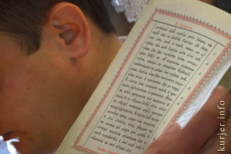 19 ноября. В православном храме прихожанин слушает отрывок из Нового завета.