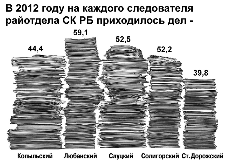 И это при том, что в 2012 году на каждого слуцкого следователя пришлось в среднем по 52,5 дел. Нагрузка немалая».