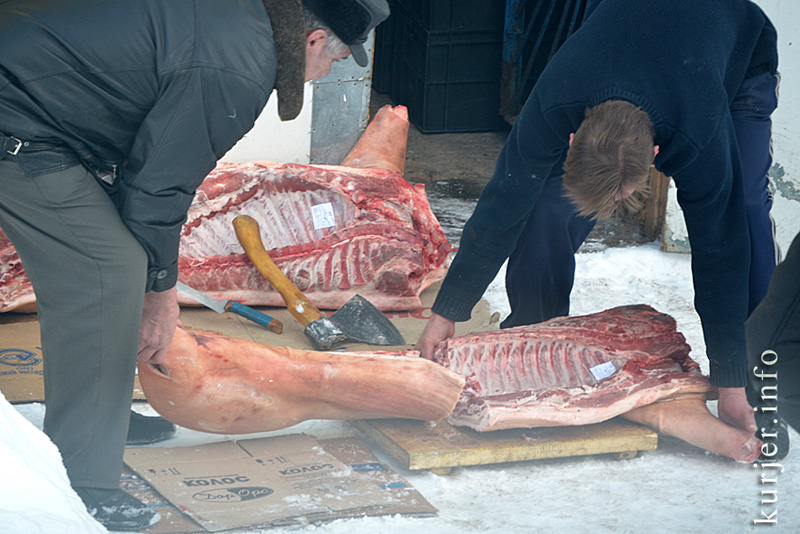 13 декабря. Очередной привоз мяса. Накануне праздников случчане охотнее покупают этот продукт, ради праздничного стола. Фото: Алесь Достанко