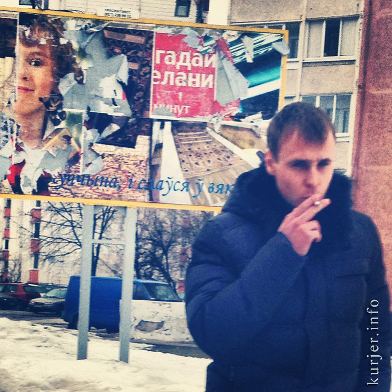 1 февраля. Рекламы на улицах города становится всё больше и больше. Она присутствует не только на билбордах, но и на стенах зданий. Фото: Алесь Достанко