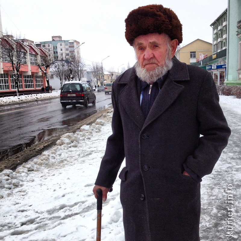 10 февраля. Пожилой мужчина возле пешеходного перехода. Фото: Алесь Достанко