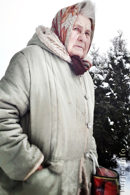 12 февраля. Пожилая случчанка неспешно идёт из магазина, внимательно разглядывая всё вокруг. Фото: Алесь Достанко