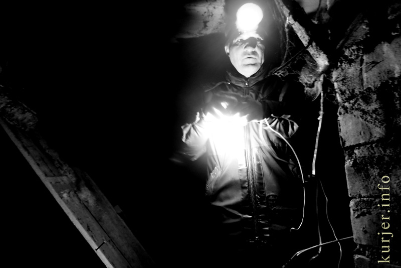13 февраля. Электрик налаживает освещение в подвале одного из домов в центре Слуцка, чтобы коммунальщики могли очистить помещение от мусора. Фото: Алесь Достанко