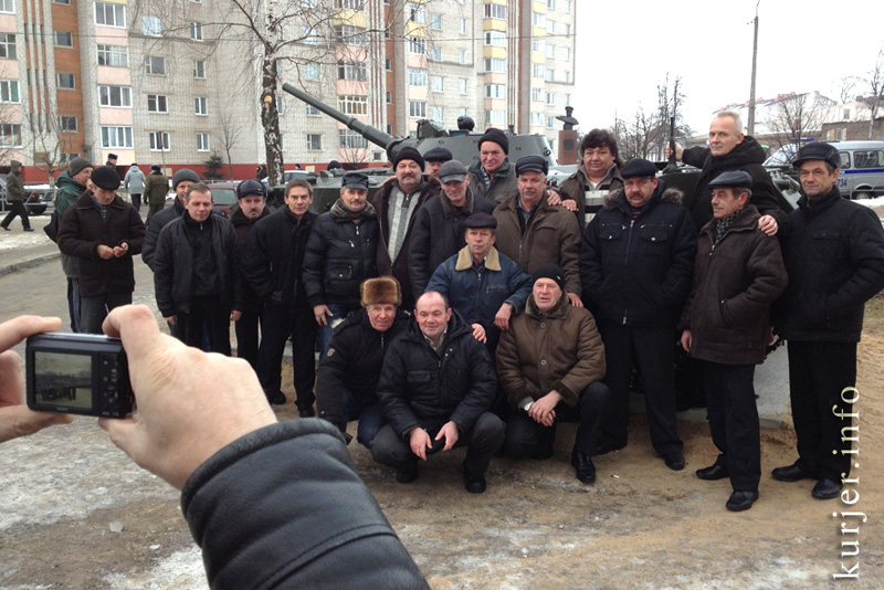 15 февраля. Ветераны Афганской войны фотографируются возле боевой машины десанта, установленной день назад возле памятника воинам-интернационалистам. БМД городу передало Министерство обороны. Фото: Эмилия Метельская