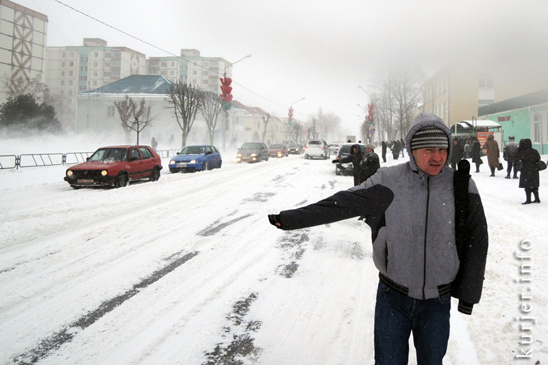 Фоторепортаж: Алесь Достанко. Некоторые горожане, подолгу ожидая автобусы, голосовали.