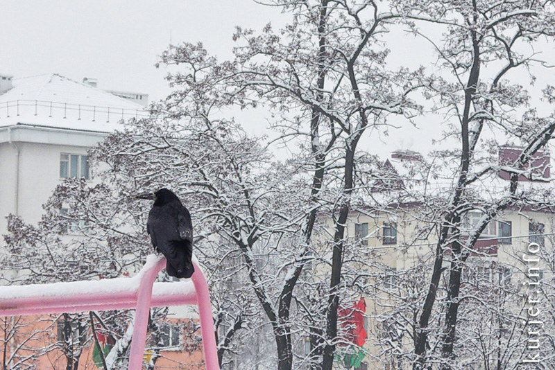 Несмотря на обилие снега, грачам есть где добывать пищу — в мусорных контейнерах.