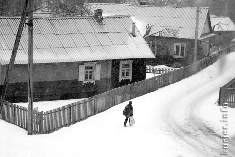 14 марта. В частном секторе. Мальчик возвращается домой из школы. Фото: Алесь Достанко