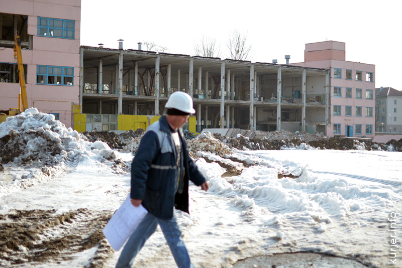 2 апреля.Ремонтируют павильон салона «Связной»(возле кинотеатра"Беларусь").В рядом расположенном жилом доме на месте выкупленной квартиры идут работы по обустройству очередного магазинчика. Фото:АлесьДостанко