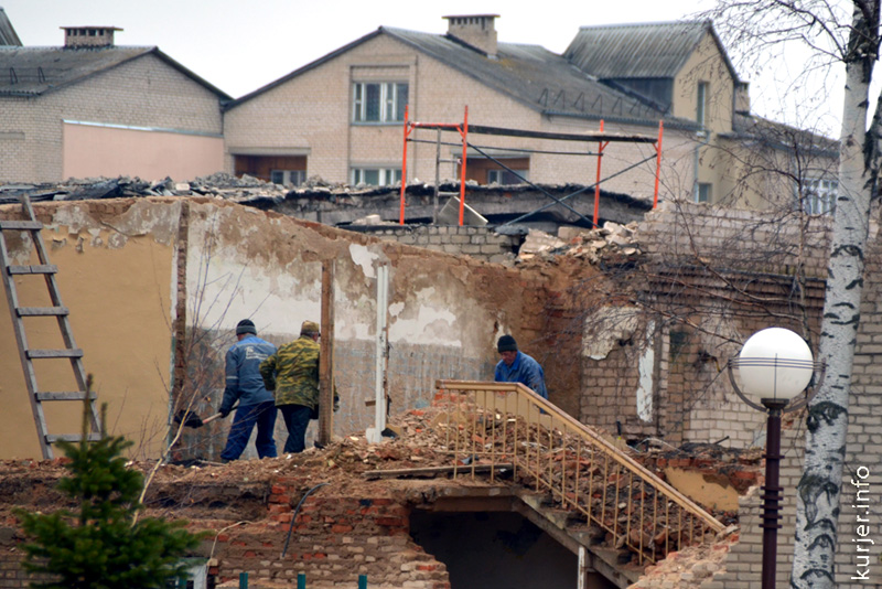 15 апреля. В комплексе зданий бывшей «текстилки» идут активные строительные работы. Представители частного бизнеса осваивают новые площади. Фото: Алесь Достанко