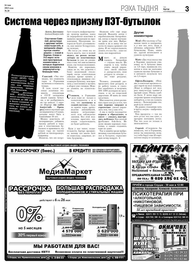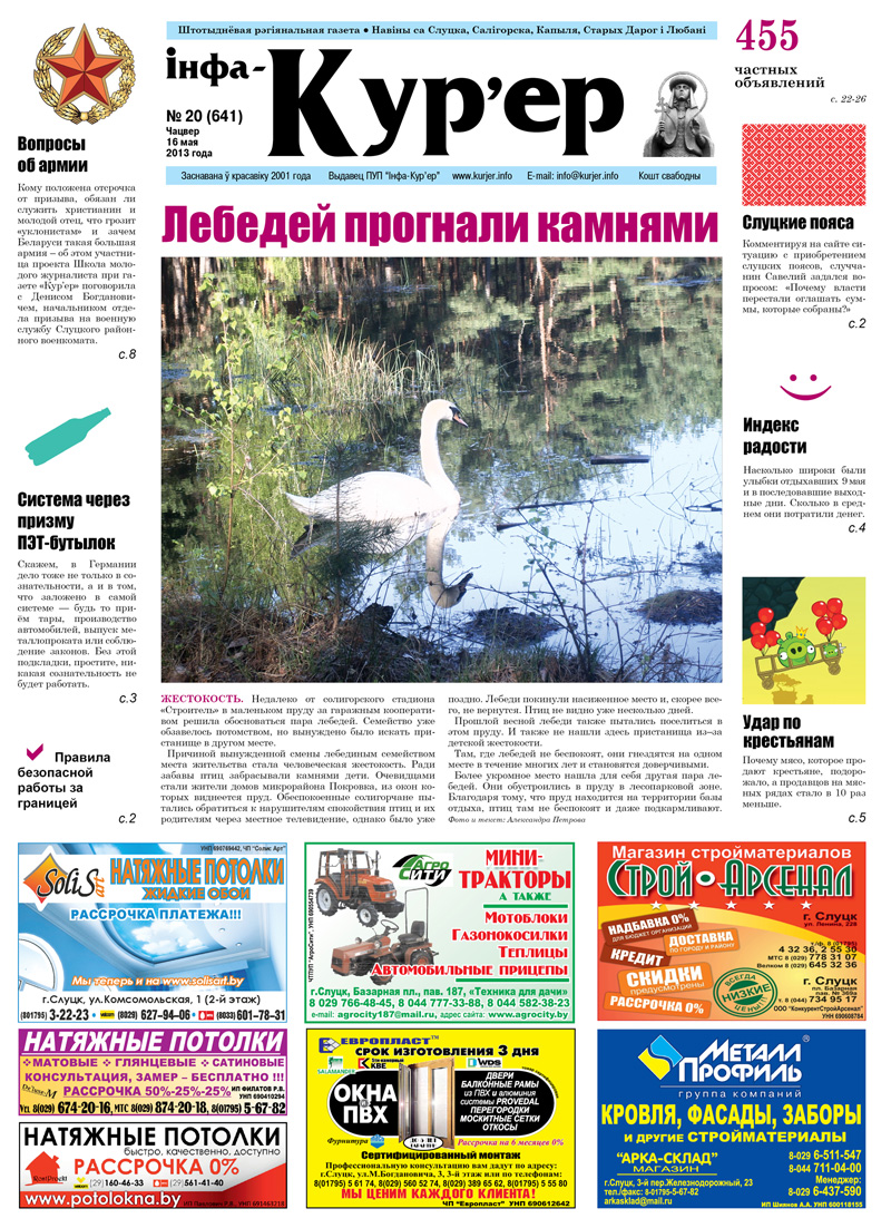 Читайте печатный номер газеты «Кур'ер» (в продаже с 16 мая).