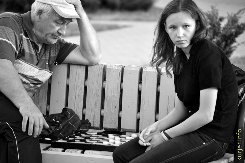 Игра в шашки. Одна из лавочек возле памятника воину-освободителю.
