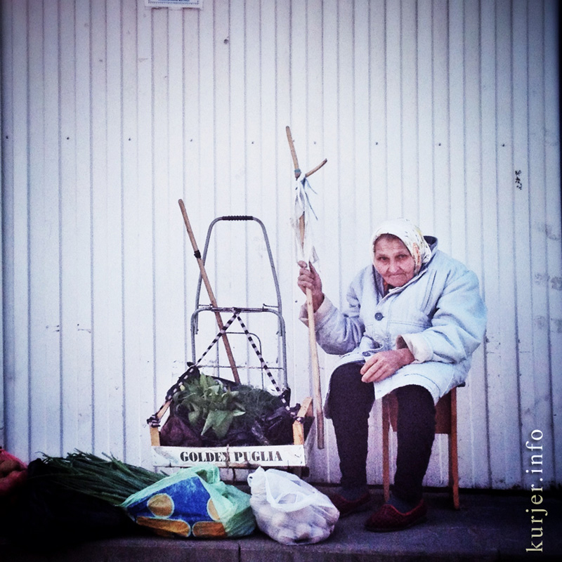 Пожилая случчанка возле одного из павильонов мини-рынка в 11 в/г.