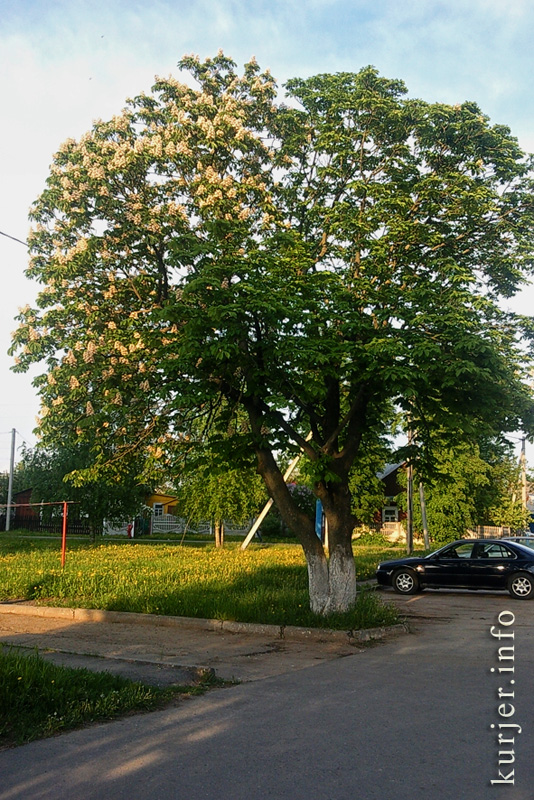 Полкаштана зацвело, а другая половина кроны не спешит. Фото: Анна Рыжая
