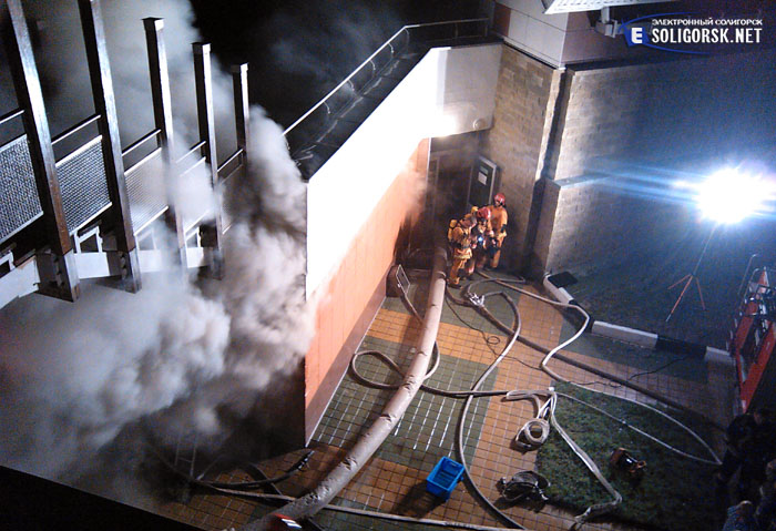 На задымление в помещении электрощитовой на территории Солигорского ледового дворца в ночь с 22 на 23 мая выезжало 11 единиц пожарной техники (10 пожарных машин и 1 автолестница).