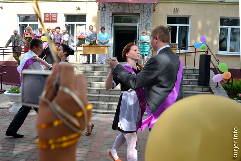Вальс. Как ни странно, в течении всей линейки один выступавший упомянул, что школа закрывается, в целом же речи велись как на обычной линейке во время обычного последнего звонка.