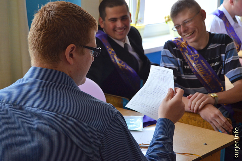 После линейки ученики некоторое время побыли в классах. Один из выпускников зачитывает свои оценки за год.