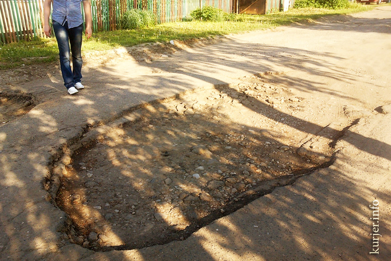 Тут же, рядом, прямо посреди проезжей части возле канализационного люка образовалась и глубокая яма, которая досаждала автомобилистам. Яма была вымыта дождями и талой водой. В мае она также была залатана — в яму залили бетон, а проезжую часть заасфальтировали, — сообщили “Кур’еру” в ЖКХ.