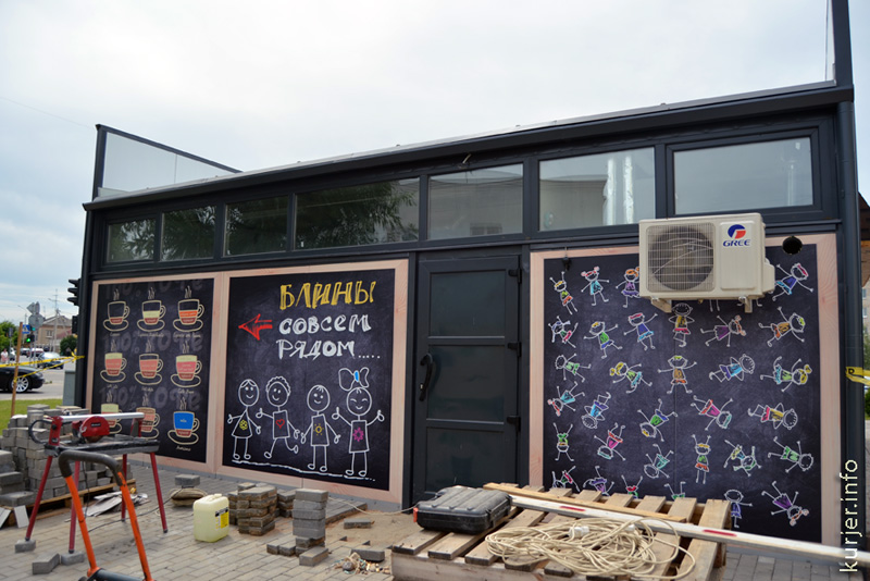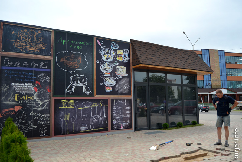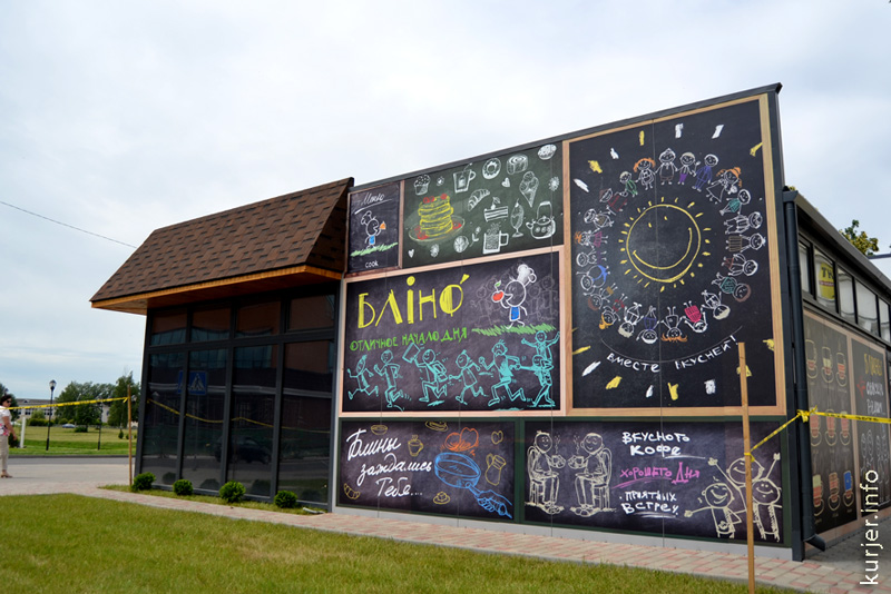 Блинная ещё не открылась, а о ней уже говорят. Строящееся учреждение общепита расположено на углу улиц Комсомольской и М.Богдановича. На днях на стенах блинной появились рисунки, стилизованные под детские, с надписями, например: «Друг познаётся в еде», «Новый день — новый блин», «Всё готово, заждались только тебя», «Хорошие блины, хорошие люди, всё хорошо».