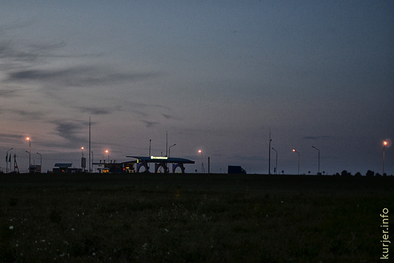 Вечер. Вид на автозарпавку по улице Магистральной.