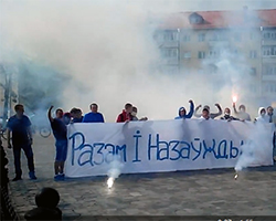 Хотите узнать больше? Оригинальное свадебное поздравление в минувшие выходные снял на видео один из участников празднества: на мосту возле городского Дома культуры друзья