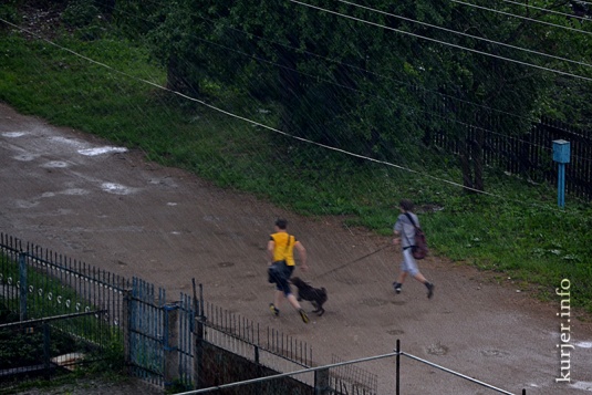 Хотите узнать больше? Днём, 2 июня, над Слуцком прошёл сильнейший ливень. Эти молодые люди с собачкой, хоть промокли, но водопад с неба ещё впереди. Фото: Алесь Достанко В
