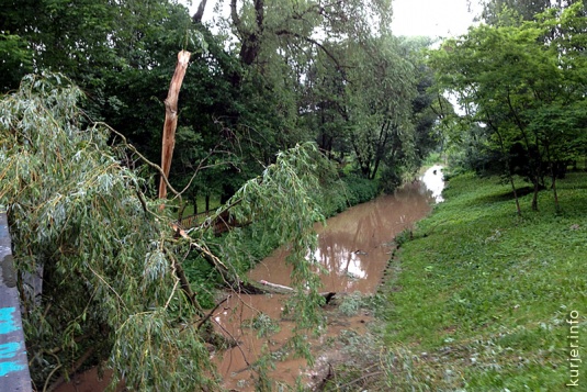 Хотите узнать больше? ЦВЕТ. Утро, центр Слуцка, мостик возле СШ №6. Две новости в одной фотографии. 1). После сильной грозы и ливня в воскресенье, 2 июня, некоторые