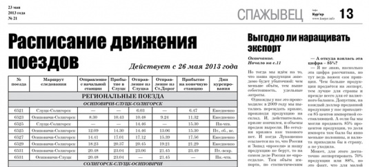 Хотите узнать больше? Покупайте и смотрите в печатном номере газеты «Кур'ер» (в продаже с 23 мая) новое расписание движения поездов. Оно начнёт действовать с 26 ...