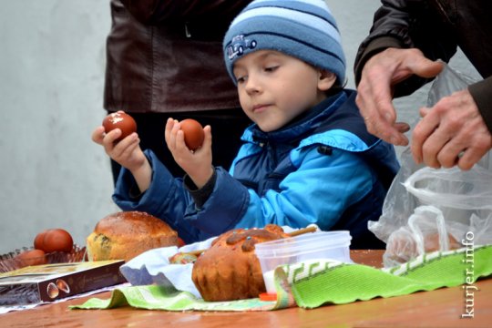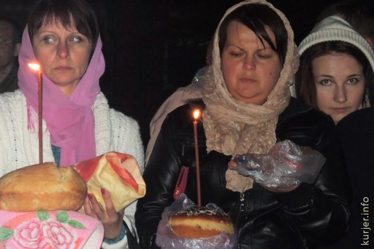 Хотите узнать больше? Слуцк, Свято-Михайловский собор. Случчане приносят пасхальные яйца, пироги, конфеты, соль и другие продукты, чтобы священнослужители их освятили.