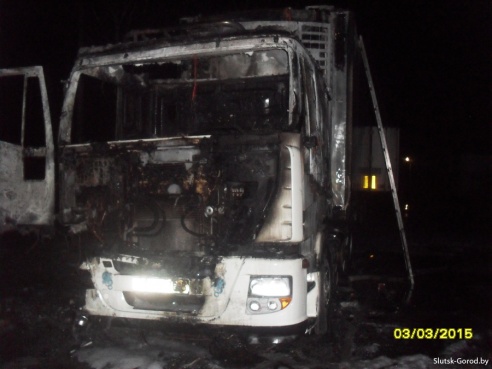 Ночью в Слуцке горела фура, предвариетльная причина пожара - поджог