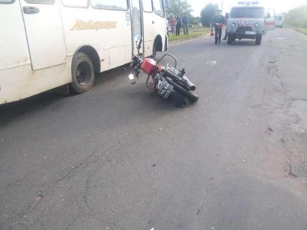 После столкновения с рейсовым автобусом мотоциклист попал в больницу 25 июня в Вилейке. Фото с сайта gorodv.by