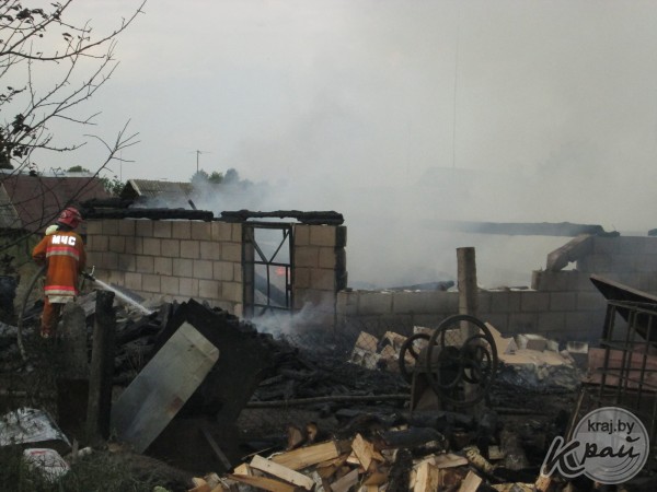 В деревне Старинки Ивенецкого сельсовета сгорел сарай со свиньями и сельхозтехникой (ФОТО)