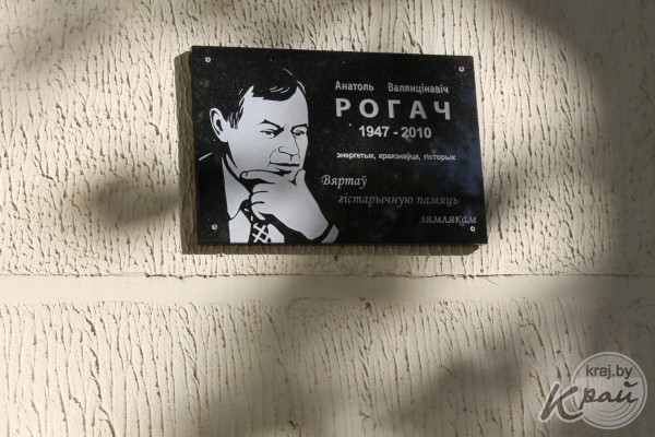Эскиз мемориальной доски изготовил вилейский краевед и архитектор Анатолий Каптюг, который отметил, что самое главное, что было в Анатолии Рогаче – это неиссякаемая работоспособность.