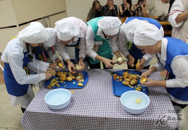 После сценической зарисовки, в которой речь шла также и о картошке как национальном блюде белорусов, под громкий отсчет группы поддержки команды отправились на кухню.