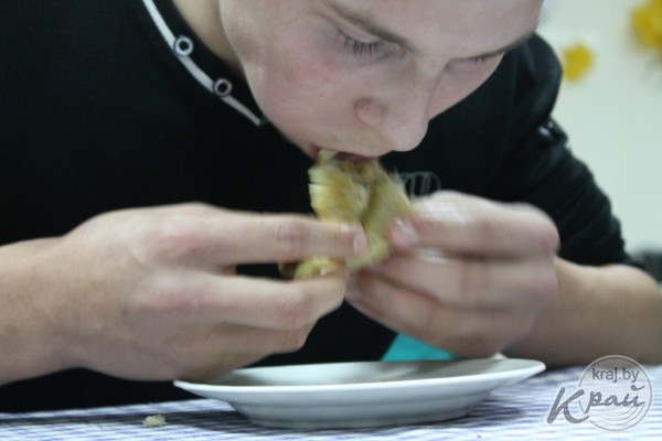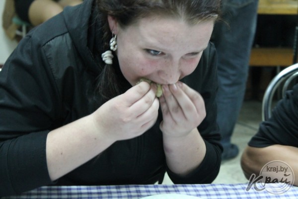 Когда приготовленные командами драники появились на столе для оценки жюри, традиционно состоялся конкурс скоростного поедания блинов. Учащаяся второго курса Вера Дурович значительно опередила своего соперника, третьекурсника Александра Субоча.