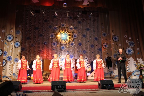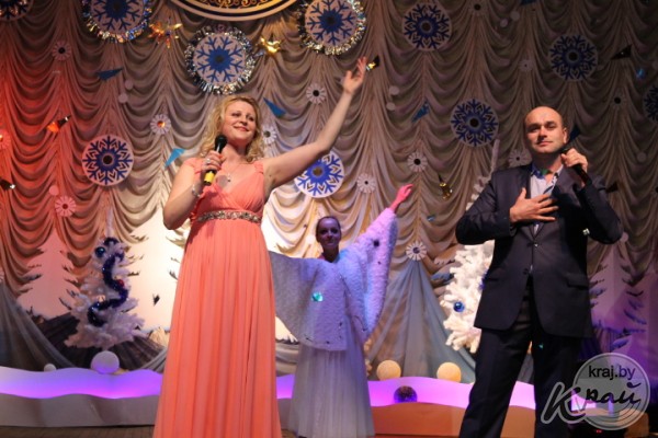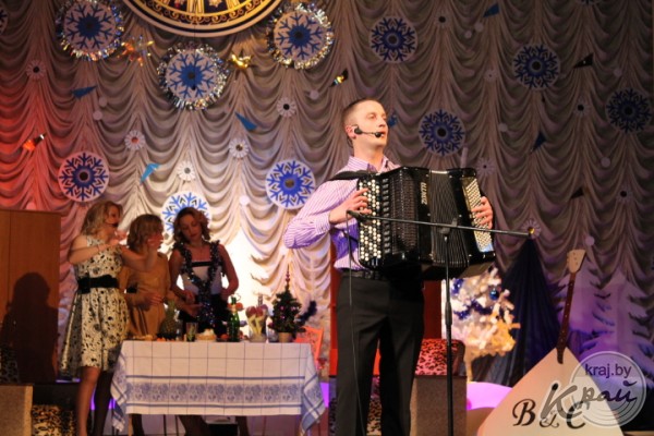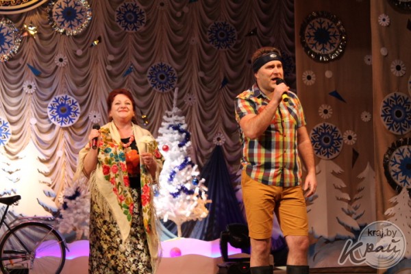 Пока герои разбирались, кто и в чьей квартире находится, на сцену выходили лучшие артисты и творческие коллективы учреждений культуры района. Они поздравляли вилейчан с новогодними праздниками, исполняли всеми любимые песни, а ведущие вечера Алеся Высоцкая и Анна Роенко развлекали публику шутками и играми.