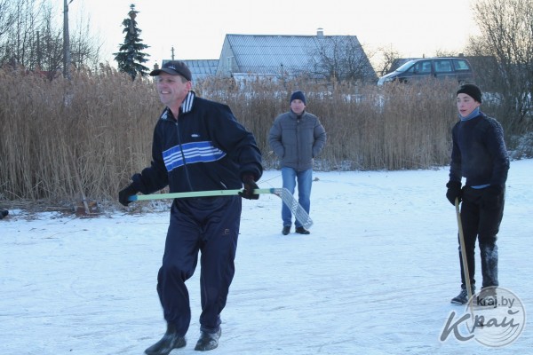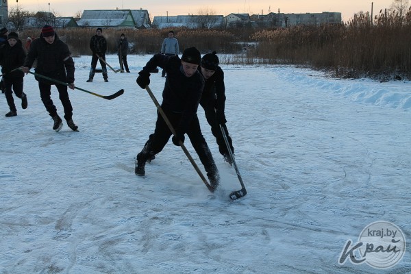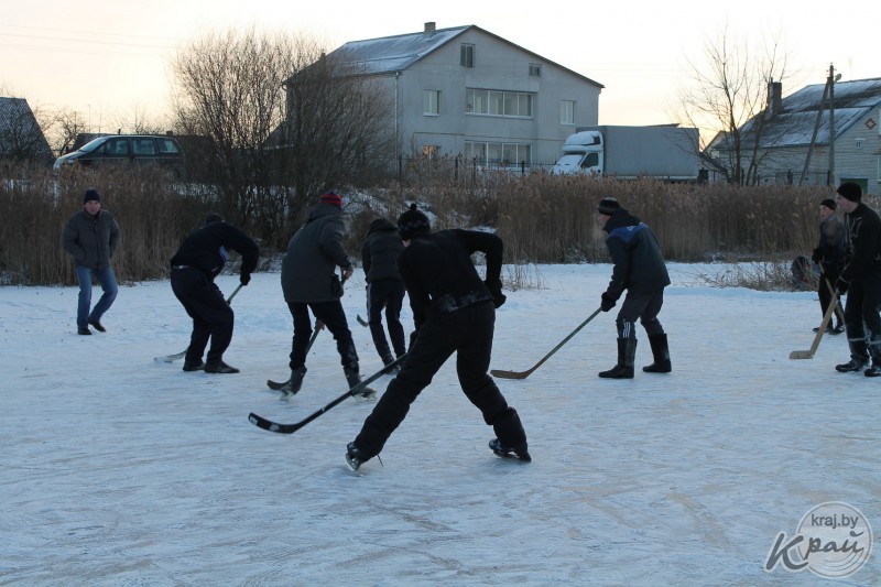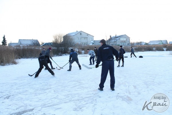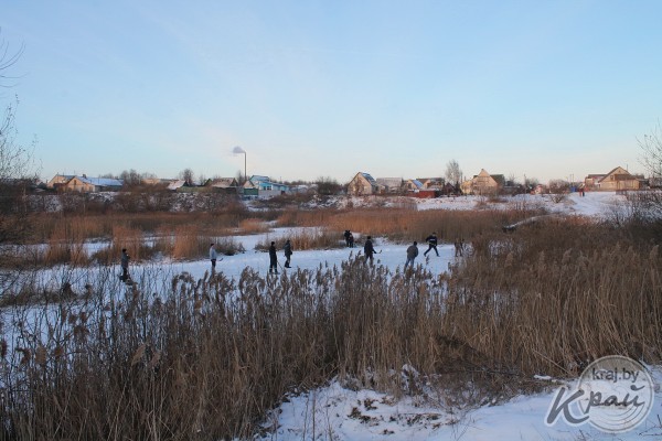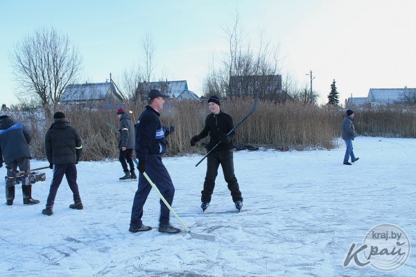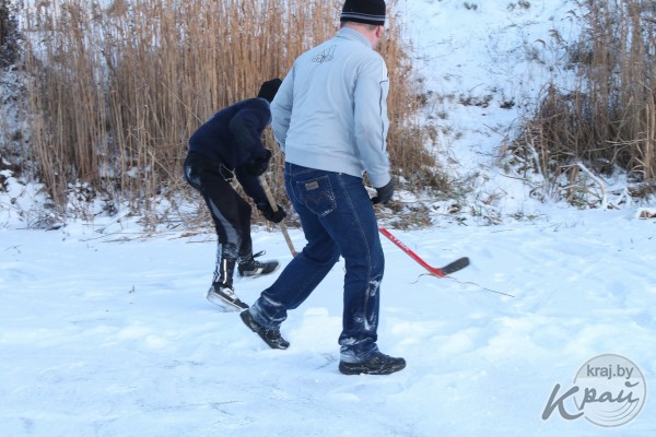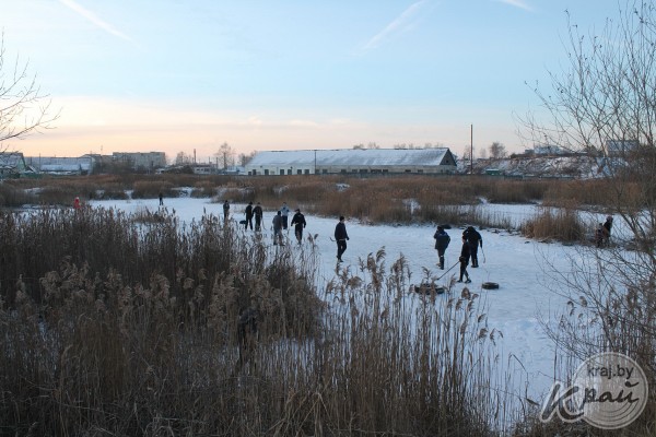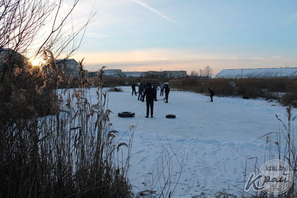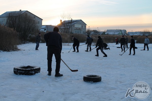 Вместо ворот – шины, и не всем достались коньки, но это не остановило местных любителей хоккея: 7 января они провели игру на водоеме возле пятой школы в Вилейке.